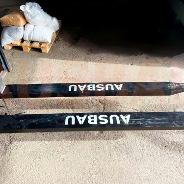 Prodloužené vidle vysokozdvižných vozíků AUSBAU se snadno upevní na standardní vidlice a upevní se zajišťovacími kolíky, které jsou součástí dodávky.